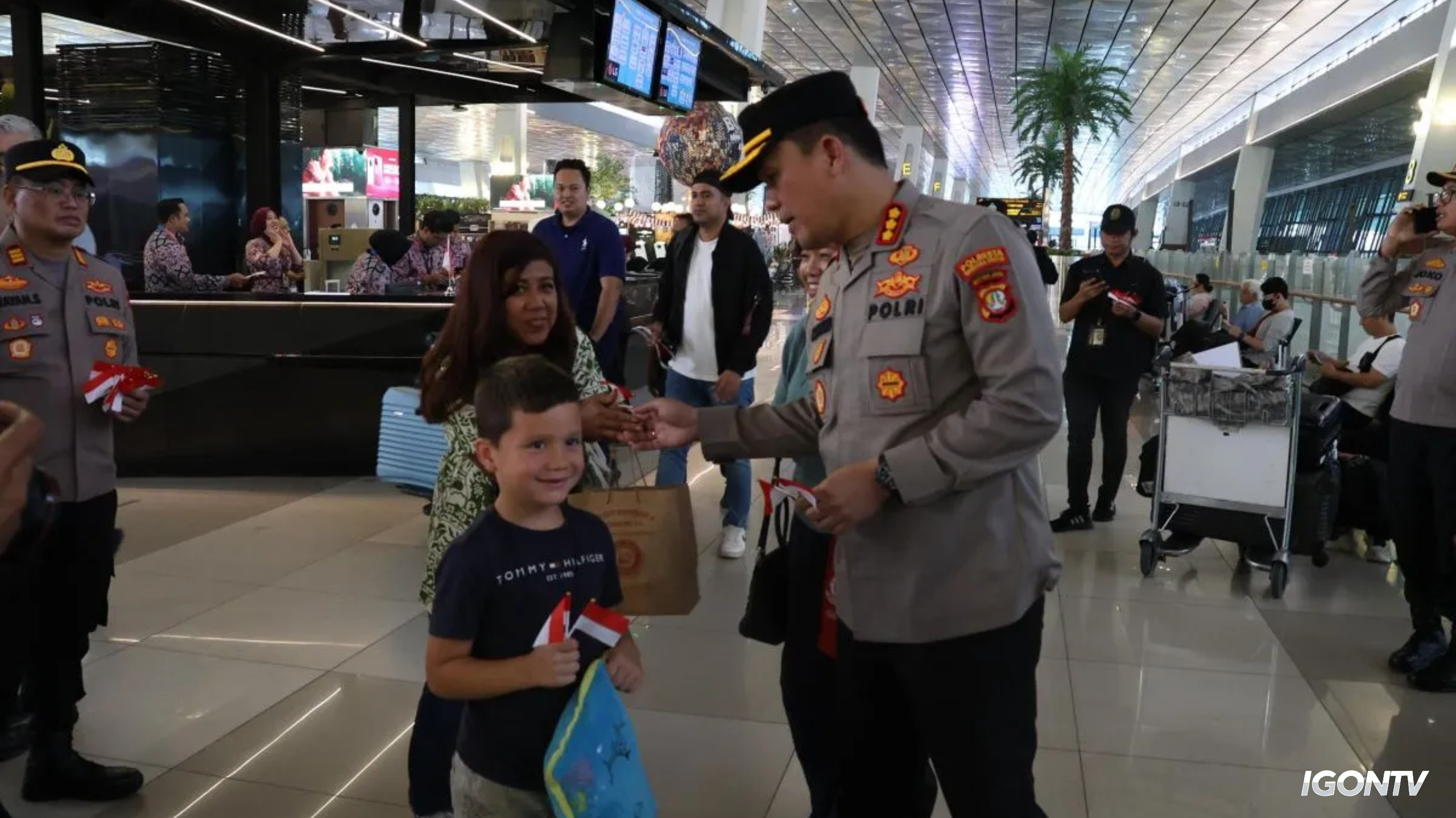 Tanggerang, IGONTV.com – Menyambut Hari Ulang Tahun (HUT) ke-80 Kemerdekaan Republik Indonesia, Kepolisian Resor Kota (Polresta) Bandara Soekarno-Hatta (Soetta), Polda Metro Jaya, membagikan 5.000 bendera Merah Putih kepada masyarakat di kawasan terminal bandara, Tangerang, Banten.